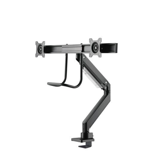 NM-D775DXBLACK ist eine gasgefederte Tischhalterung mit Querstange und Hebel für Flachbildschirme bis zu 32 Zoll (81 cm).