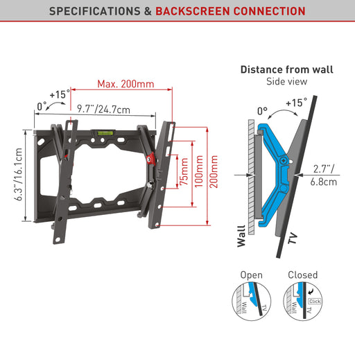 Super lange TV-Wandhalterung | 13" - 65" | Barkan Mounts