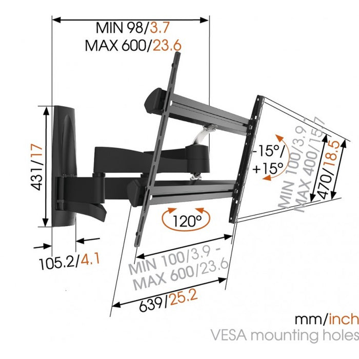 Vogel's WALL 2350 draaibare muurbeugel voor schermen tot 65 inch zwart