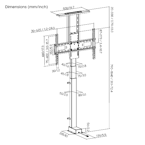 Elektrischer TV-Lift vertikal bis zu 80" TV und 60 kg mit APP, Voice und AB