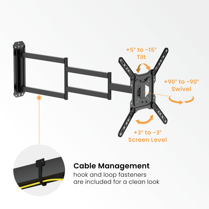 Mit einem extralangen Arm von bis zu 94,6 cm geht der universelle TVB-15XL noch einen Schritt weiter. Die perfekte Balance aus Stil und Funktionalität. Für alle, die maximale Bewegungsfreiheit in Kombination mit einem schlanken Design wünschen.