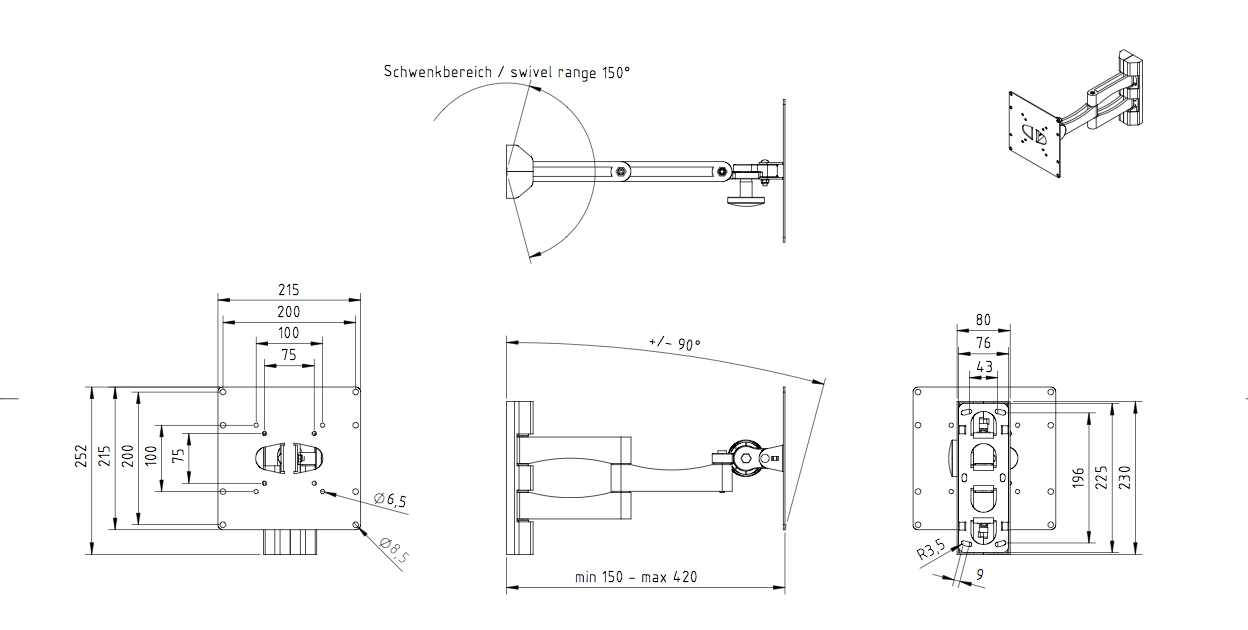 Hama Muurbeugel Zwart VESA 200 2 draaipunten kantelbaar