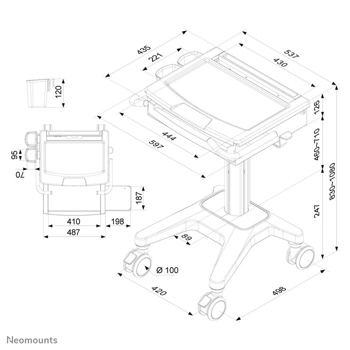 MED-M200 ist ein mobiler Arbeitsplatz für Laptop, Tastatur und Maus.