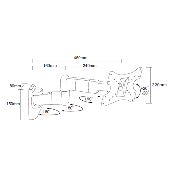 TV muurbeugel voor schermen tot 32" Draaibaar en kantelbaar
