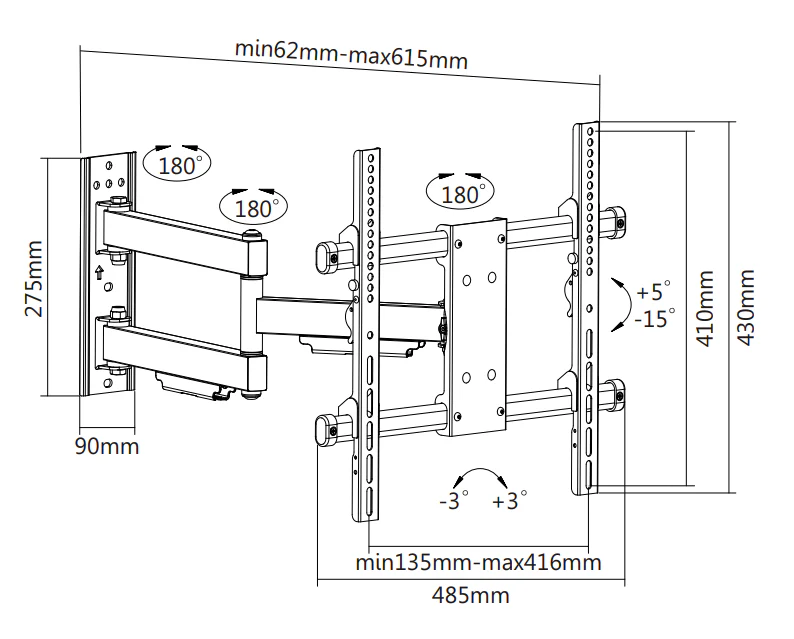 Wandlänge: 6,2 - 61,5 cm, für verschiedene Wandinstallationen